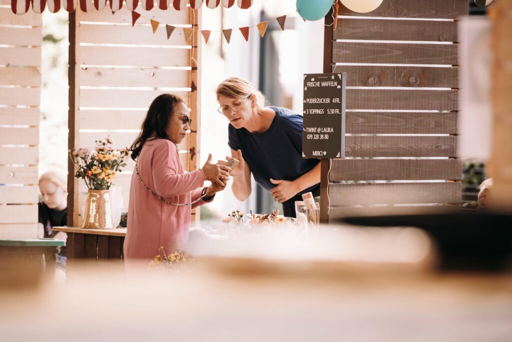 An der Bar kann nur mit Twint oder mit Jetons bezahlt werden! Jetons gibt’s beim Infostand gegen Bargeld.